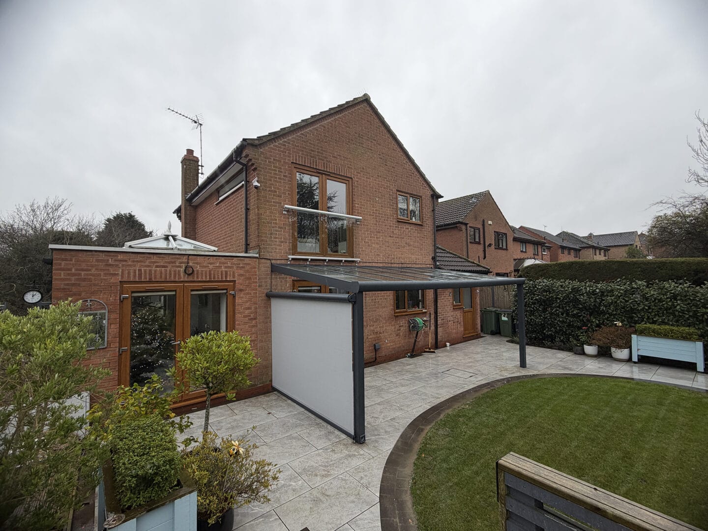 Great British Awnings recently completed the installation of a sleek glass veranda and blind at this delightful family home in Leicester. The project was designed to create a comfortable outdoor area that could be enjoyed in a wide range of weather conditions, while enhancing the overall appearance of the property.