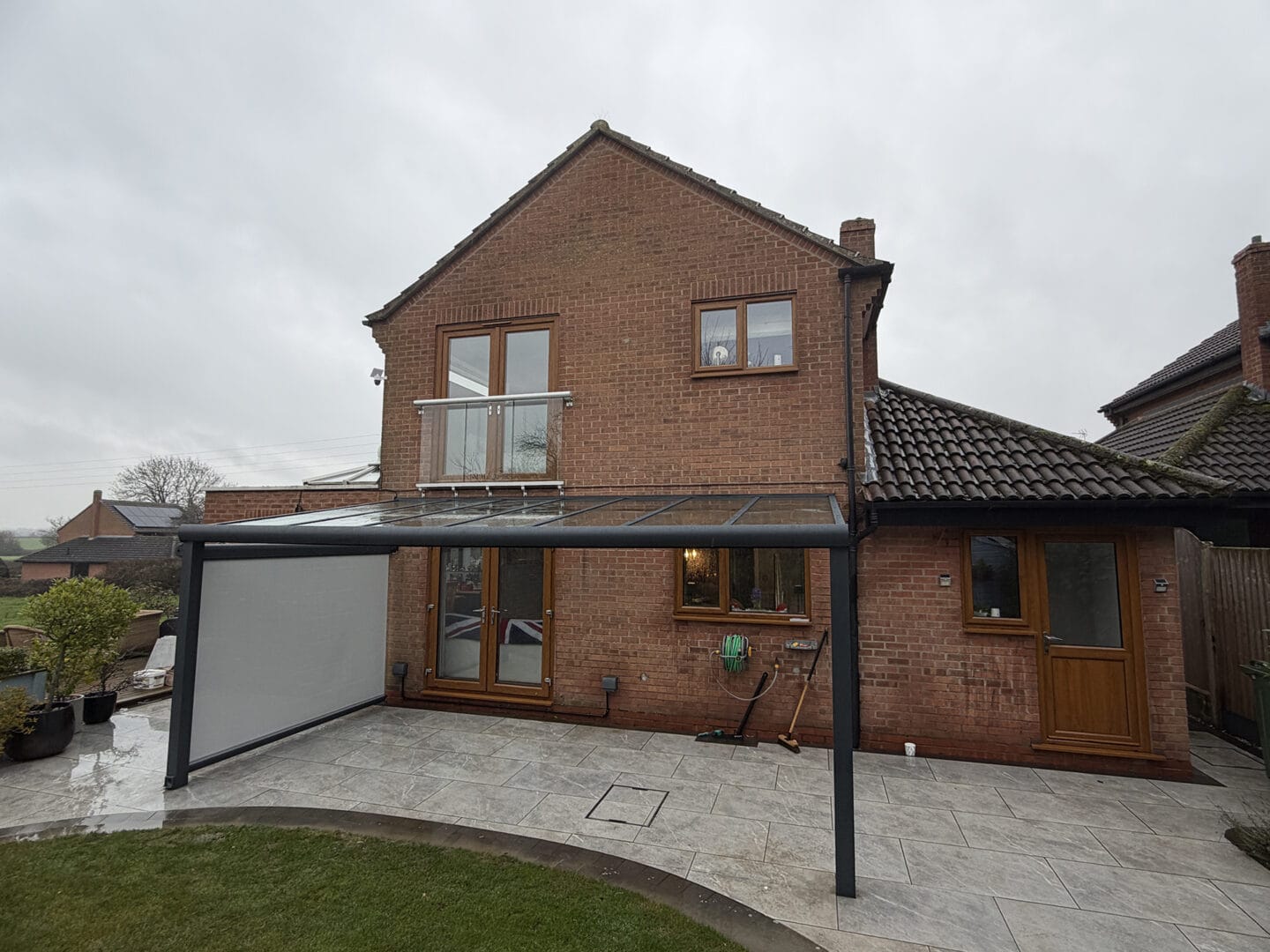 Great British Awnings recently completed the installation of a sleek glass veranda and blind at this delightful family home in Leicester. The project was designed to create a comfortable outdoor area that could be enjoyed in a wide range of weather conditions, while enhancing the overall appearance of the property.